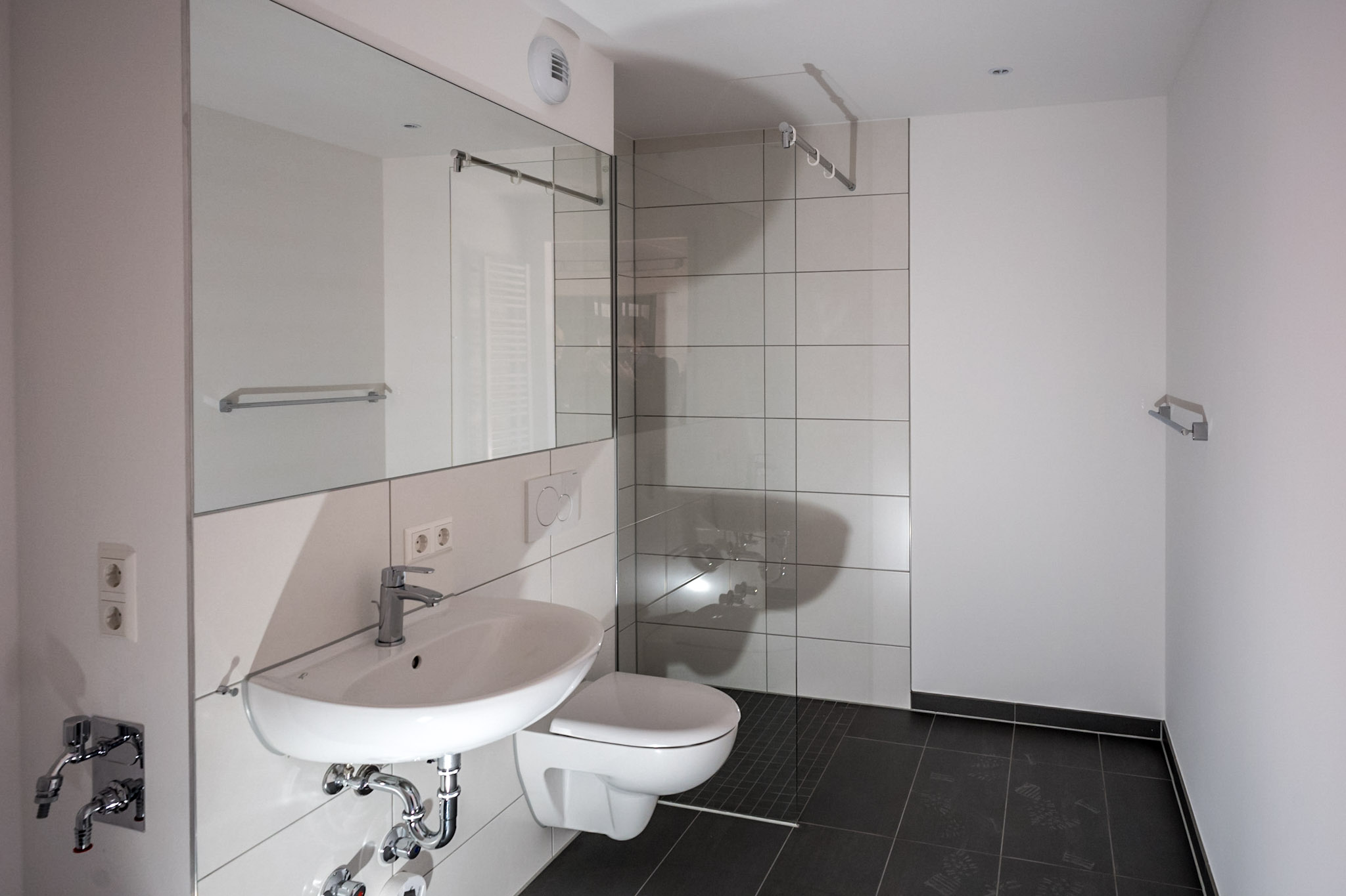 Ein optimierter Bauablauf wird unter anderem durch den Einsatz von Spannbetondecken und Fertigbadzellen erreicht – Aspekte, die während der Planungsphase von der dabei bereits eingebundenen B&O Gebäudetechnik als ausführendes Unternehmen eingebracht wurden. Im Ergebnis wurden so Gesamtkosten (KG 1-9) von knapp unter € 2.600/m² wfl. erreicht. Dabei beträgt der Grundstücksanteil ca. € 215/m² wfl.